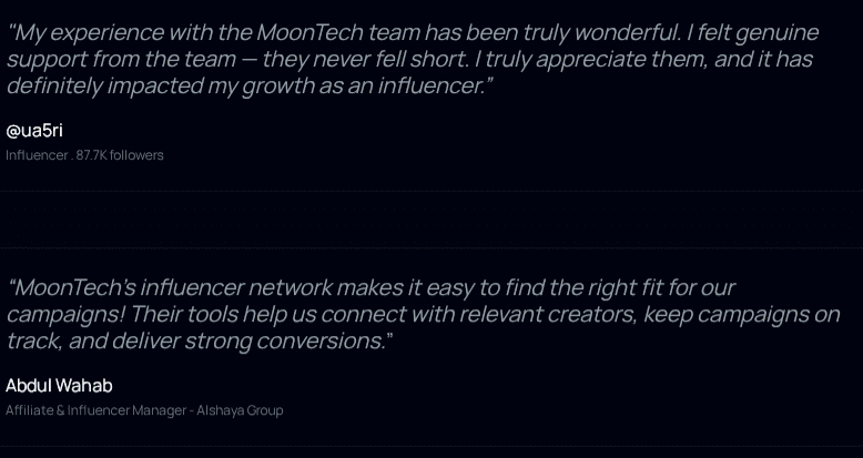 What’s best, MoonTech gives you access to verified creators and performance marketing tools that turn influence into revenue.