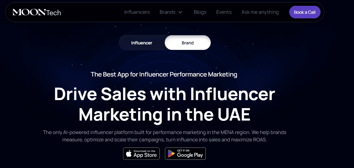 MoonTech is the best app for influencer performance marketing that helps you run influencer campaigns focused on real data, not just likes. It’s an AI-driven platform built for the MENA region.